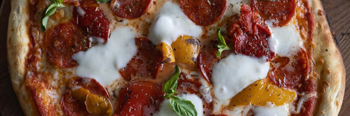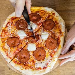Bold pepperoni over tangy tomato and bubbling mozzarella on a crisp, stone‑baked base. Clean heat. Sharp finish. Exactly as it should be.
