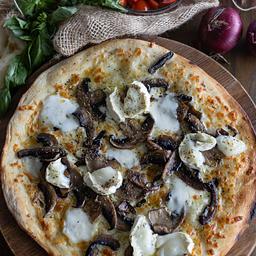 Tomato or olive oil base layered with mozzarella, a woodland mushroom medley, creamy goat’s cheese and aromatic herbs — stone‑baked to bring depth, earthiness and lift in every bite.