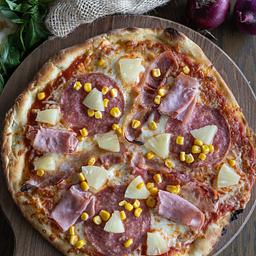 Marzano Tomato Base, Italian Salami, Irish Crumbed Ham, Crispy Bacon, Pineapple & Sweetcorn