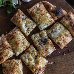 Scrumptious Foccacia oval with real Irish butter infused with garlic topped with mozzarella cheese and herbs